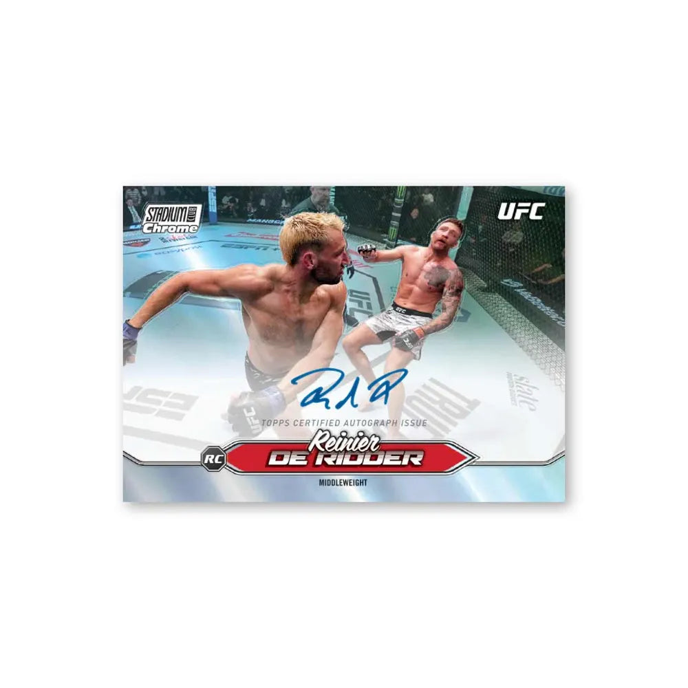 Entra nell’Ottagono con 2025 UFC Topps Stadium Club, una collezione che cattura tutta l’intensità delle MMA grazie a fotografie spettacolari, cartoncino premium e tecnologia Chrome. Dai knockout più iconici agli scambi di grappling più duri, ogni carta celebra la potenza e l’emozione dell’UFC.
